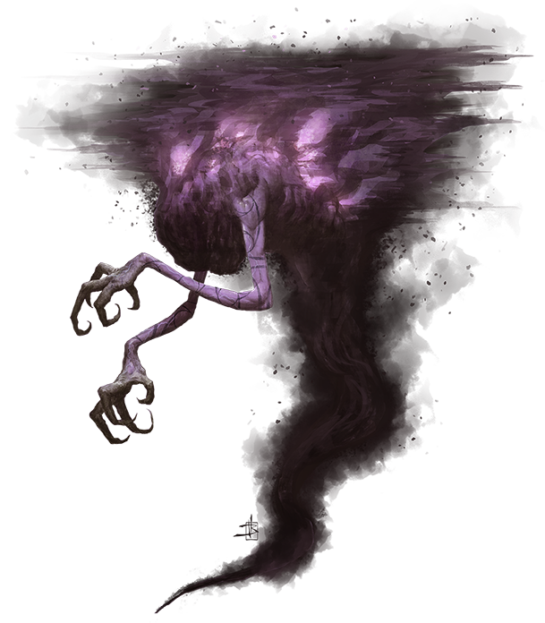 As if soul eaters weren't frightening enough, there exists on Abaddon much larger variants of these monsters, known as soul gluttons. Appearing as roiling, inky black clouds and possessing a half dozen arms, soul gluttons are much deadlier than their smaller kin and are also much more dangerous to conjure, as they have a disturbing knack for wriggling out of a conjurer's control.