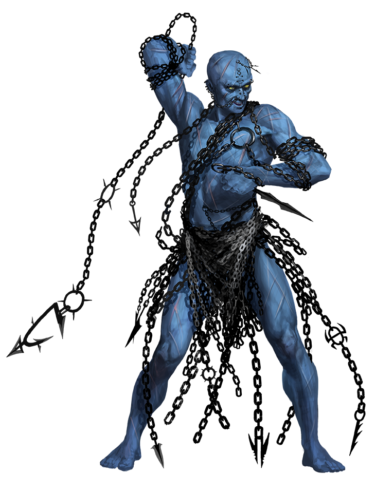 Many velstracs forge their own chains, but others outsource the task to unique velstracs known as almoners. These blind, deaf, and mute velstracs resemble six-armed halflings severed at the waist that toil away endlessly at a great burning foundry called the Shadow Forge. Almoners operate under mysterious strictures, and are just as likely to turn a velstrac away empty-handed as they are to hand one a finely crafted chain before the request has even been uttered.