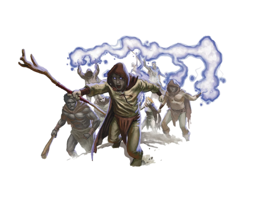 Followers of Rovagug must usually conceal their devotion to the Rough Beast, hiding in remote cave complexes or abandoned ruins, but they emerge when they sense weakness, gathering together into a destructive, homicidal mob to hunt down priests of rival deities or slaughter entire towns.