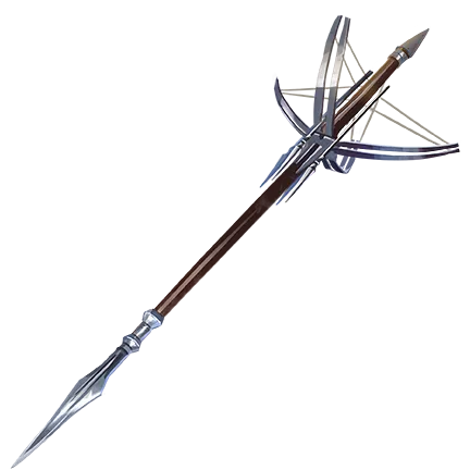 This lance has a heavy grip with two parallel crossbow fixtures built into it, making it a useful weapon for combats who prefer to keep their distance at all times.