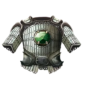 This suit of +2 resilient splint mail has a large, green gemstone inset in a prominent location.