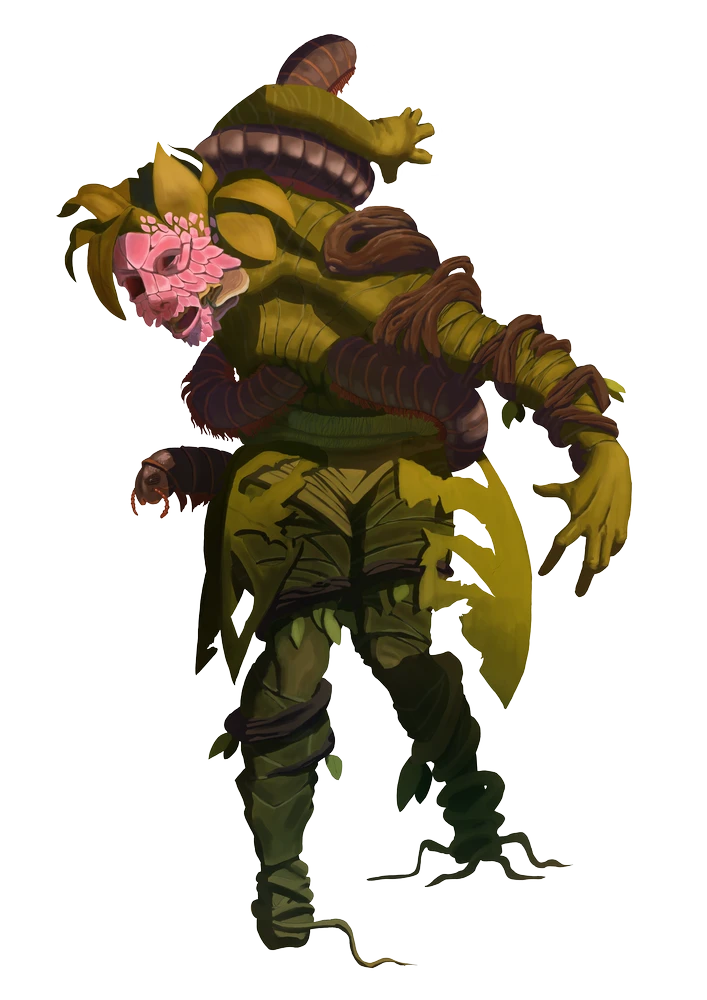 Most putrifers arise spontaneously when a gathlain, ghoran, leshy, or other intelligent plant dies traumatically from an effect that causes swift rot and decay. Others are created, either purposefully by necromancers or incidentally during magical experiments. Regardless of origin, a putrifer loses much of its intelligence during the transformation, becoming aggressive, erratic, and easily confused. Putrifers act instinctively, often lingering around the places they frequented in life. They find comfort in patterns and usually form simple daily routines that they loathe to deviate from. Often, these routines echo those they performed in life. A putrifer's memories are distant and faded, returning only periodically in short, confusing bursts that drive the putrifer to reenact moments from their past lives. Their inability to reconcile these memories with the present sometimes causes putrifers to destroy the locations they revisit and harm the people they once knew.