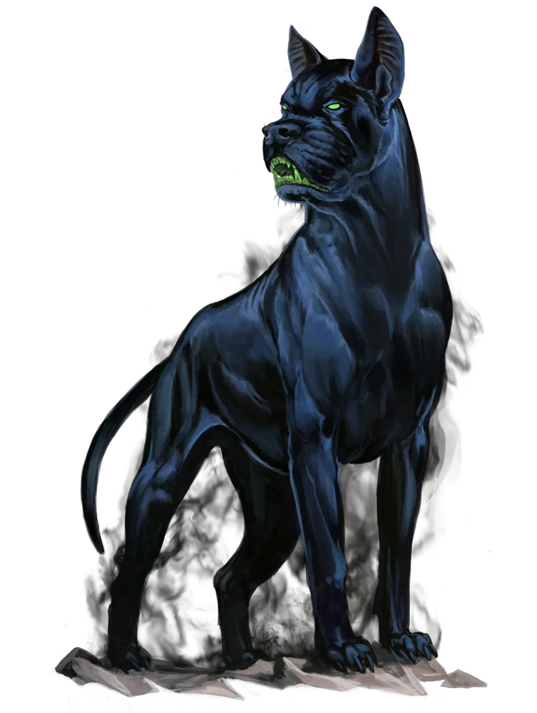 Barghests are canine beasts that take great joy in the hunt, often lurking near humanoid settlements to find prey that can provide a suitable challenge. Even in the deepest wilderness, barghests choose the most clever or difficult prey, searching endlessly for challenges like giants, nymphs, and unicorns. More than victory or even the possibility of a meal at the end, barghests enjoy the thrill of the chase and the fear they create within their prey. Particularly terrified targets of a hunting barghest might even be allowed to escape, spreading the terror and enticing hunters who can become the barghest's next victims. A handful of barghests resort to learning magical methods of causing fear directly, though they find such fear hollow and unsatisfying.
