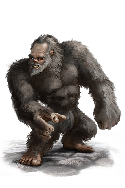While normally nonconfrontational, a sasquatch can be driven to violence when startled or when their homeland is threatened, be it by the expansion of pioneers or the intrusion of fell supernatural influences. Usually, a sasquatch's attack lasts as long as it takes to frighten away a foe; they rarely pursue those who flee from their displays of dominance.