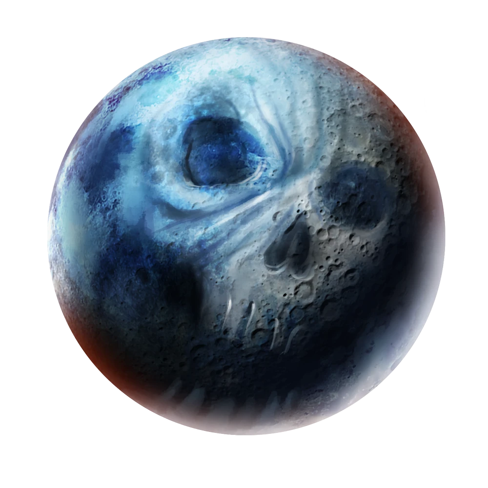 Source Divine Mysteries pg. 143Ancient beyond mortal reckoning, Groetus is an entity who cannot be easily understood. He hangs in the sky above the Boneyard, a skull-faced moon constantly observing the passage of the souls below. Events can cause him to draw ominously closer to