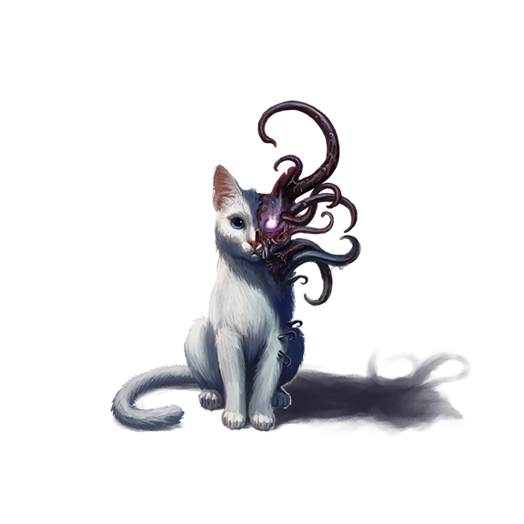Angoyangs resemble white cats with black stripes like those of a tiger. They have beautifully silken fur, piercing blue eyes, and long fluffy tails. Yet, far from the picturesque feline companions they appear to be, angoyangs are actually terrifying beasts capable of peeling back the fleshy layers of their face to reveal a mass of long, toothed tentacles.