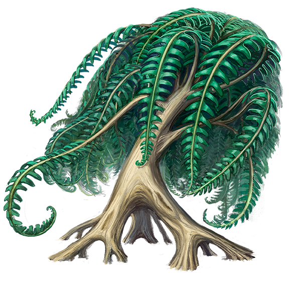 The First World still holds the first rough draft of many creatures in the Material Plane, but it's hard to tell what sort of creature the ta'apundo was ever intended to be. Its bark poses significant danger to metallic objects, as it converts any metal touching it into wood as fibrous and as flexible as its own body. Capricious and skittish, ta'apundos make friends easily but consider anyone who wields or wears metal to be a hated enemy.