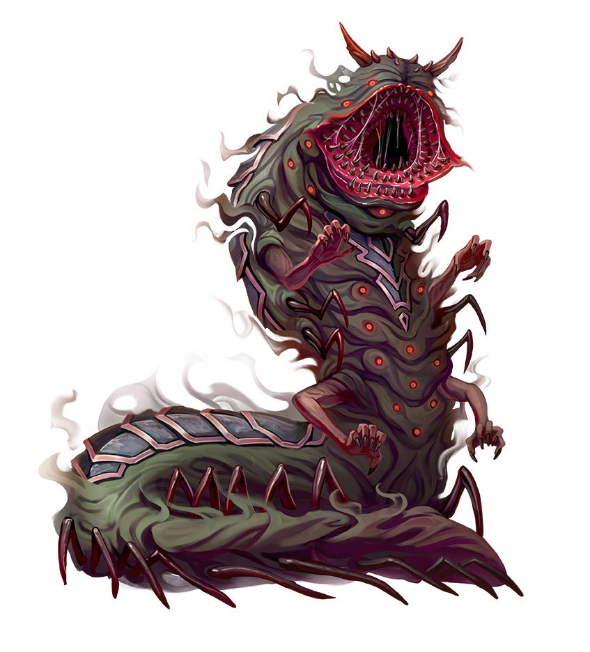 An urveth is a massive, four-armed burrowing terror with a wormlike body and gaping maw that devours everything it can. Urveths burrow deep underground to hide from the sun, emerging under the cover of darkness to kill and consume.