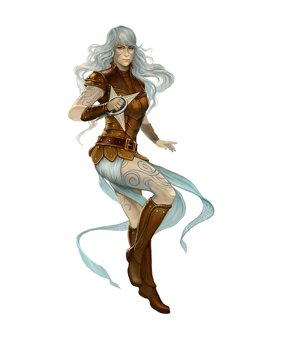 Born with elemental gales coursing through their breath, sylphs are wispy planar scions whose bodies seem caught in a perpetual, gentle breeze. Born of unions between mortals and djinn, sylphs are quick-witted and creative, but they are prone to flights of fancy and tend to be easily distracted.