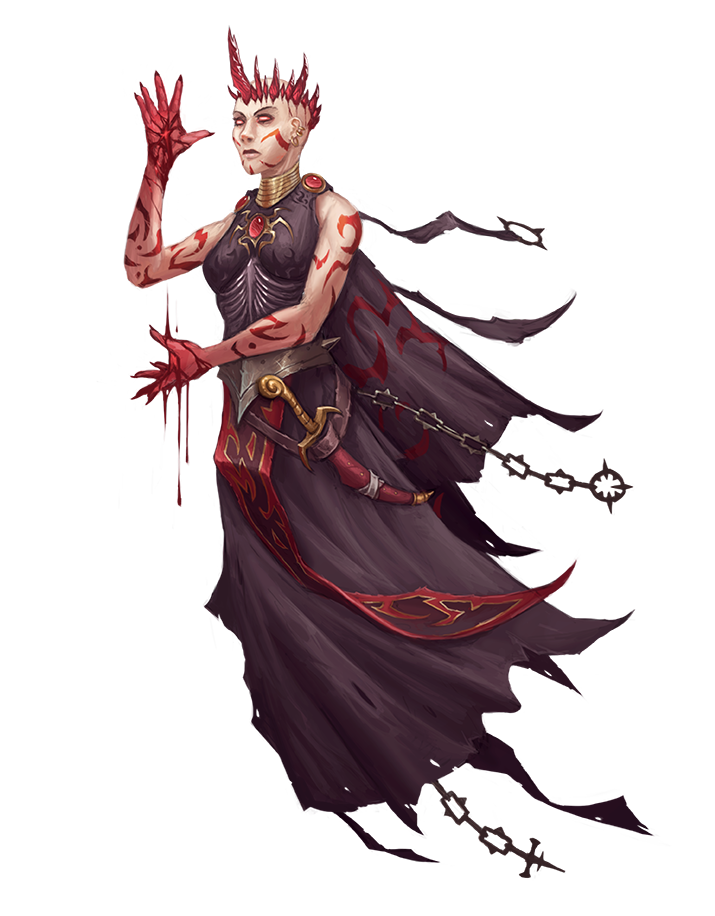 Velstracs are horrific, shadow-dwelling fiends who seek ultimate sensation through self-mutilation. They transcend their stoic detachment only when inflicting pain and terror upon their victims, practicing new forms of debasement and torture before then turning their knives on themselves. Although velstracs consider themselves beyond such limitations as morality or mortal taboos, their victims know them as emotionless tormentors who inflict debased, sadistic suffering. They claim to seek perfection in thought, form, and action, although they don’t recognize any refinement that doesn’t require the painful excision of the flesh or spirit.