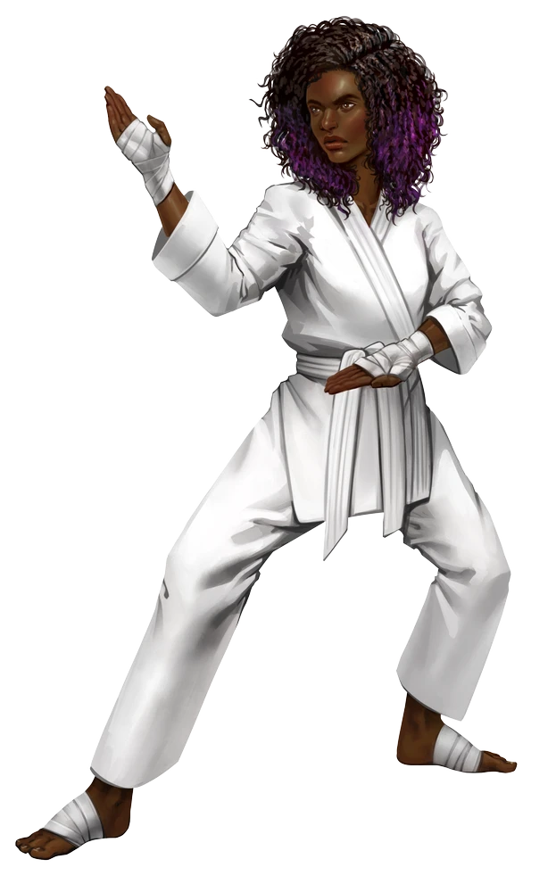 Defensive Side Kick [reaction] Trigger A creature within the black belt's reach uses a move action; Effect The black belt makes a fist Strike designed to intercept and create distance. This Strike does not count towards the black belt's multiple attack penalty, and the black belt's multiple attack penalty doesn't apply to this Strike. On a successful hit, the target is pushed 5 feet away. Kiai! [free-action] Frequency once per turn; Requirements The martial student attempts a Strike; Effect The martial student shouts to startle their adversary. If the Strike is successful, the target becomes frightened 1.