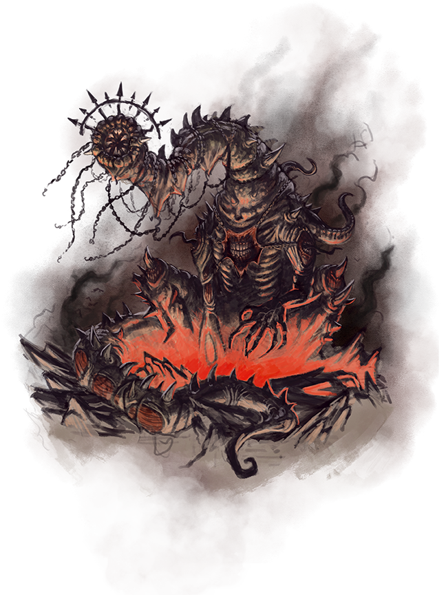Some mortals refer to velstracs as “kytons,” a misattribution that the velstracs tolerate with cold amusement. The term “kyton” denotes a master or virtuoso among their kind, and these fiends enjoy being labeled masters of their horrid paths to perfection through agony.
