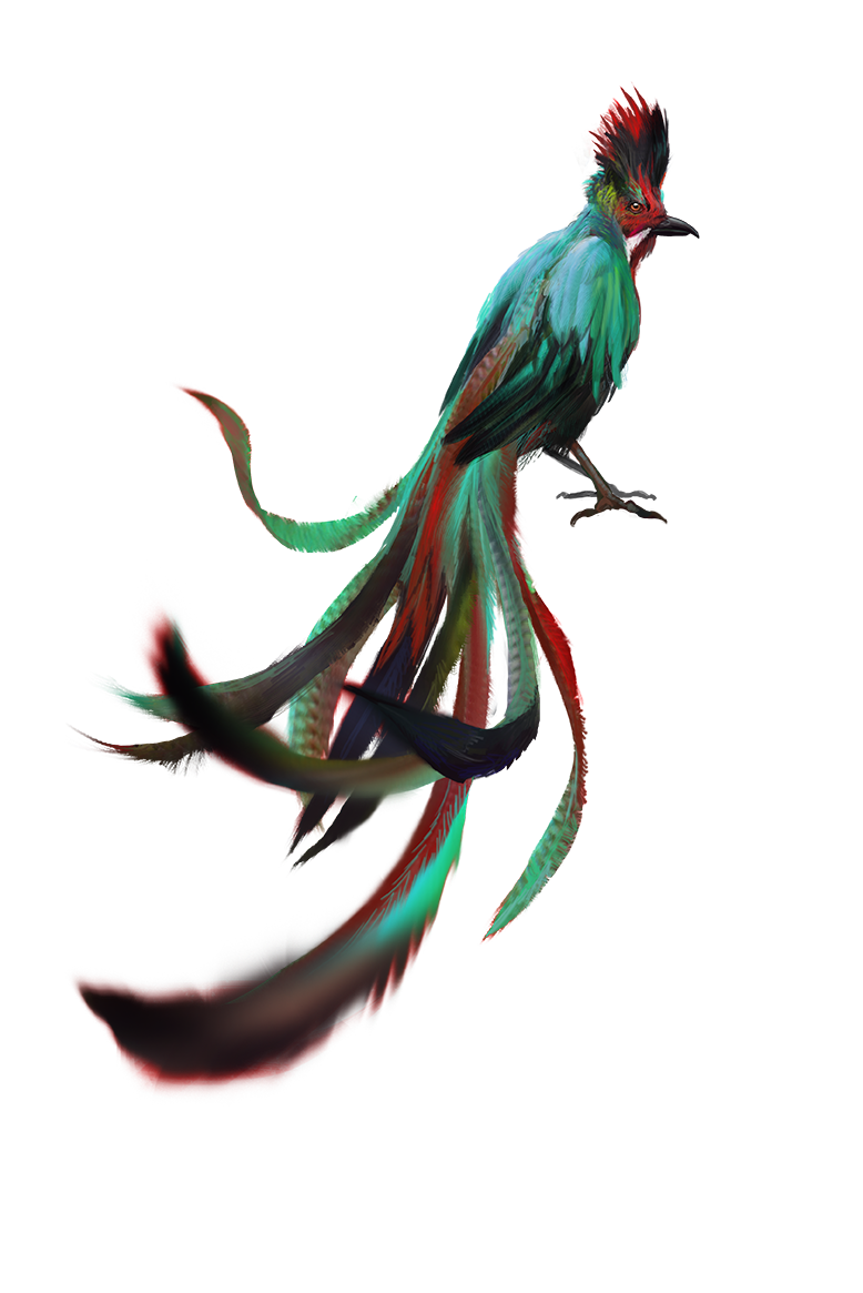 Other varieties of bebaki flit amid the jungle canopies of the Mwangi Expanse, their relationship to one another identifiable by the constant feature of their massive and deadly tail feathers. A subspecies called long-beaked emperor birds is remarkable for its bright yellow plumage and its namesake beak, which is long and sharp enough to dig through ironwood tree trunks, allowing it to feast on the golden sting ants native to certain corners of the Mwangi Expanse.