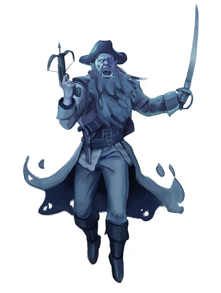 Undead prowling the ocean on derelict ships have long been threats sailors keep an eye out for. Other than corporeal undead, some undead pirates take on an incorporeal form, especially if their bodies have been lost to the fishes. Captains of crews in particular are likely to return from the dead, perhaps on account of their strong personalities.