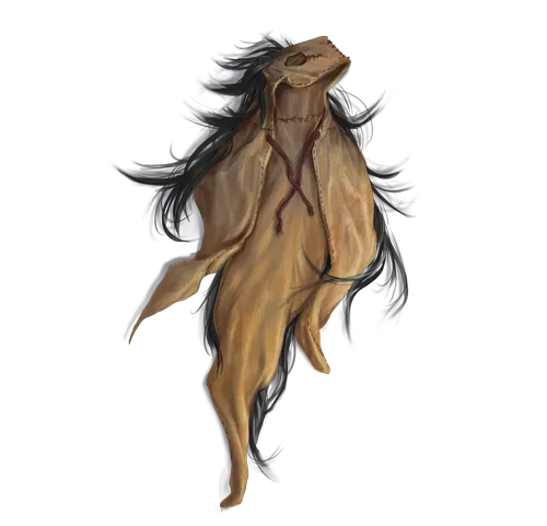 This long hide cloak is stitched with patches of the ebony hair of a tikbalang. While wearing this cloak, you take a –2 item penalty to saves against illusions but gain a +2 item bonus to Deception checks.