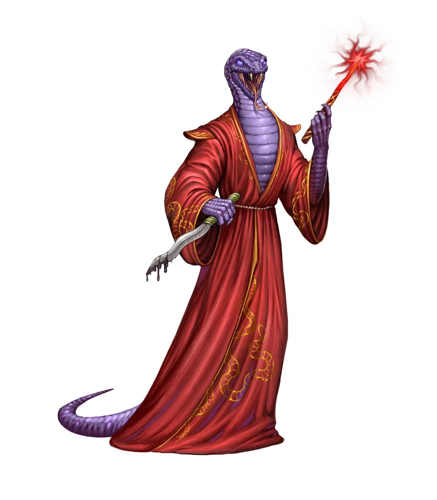 Melee [one-action] dagger +24 [+20/+16] (agile, finesse, magical, thrown 10 feet, versatile S), Damage 2d4+2+9 piercing plus 1 evilMelee [one-action] fangs +22 [+17/+12] (finesse), Damage 2d8+2+9 piercing plus 1 evil and serpentfolk venomDivine Prepared Spells DC 30, attack +23 (+4 dmg); 5th dispel magic, flame strike, harm (×6); 4th divine wrath, heal, spiritual weapon; 3rd crisis of faith, fear, heal; 2nd darkness, resist energy, silence; 1st command, heal, ray of enfeeblement; Cantrips (5th) daze, divine lance, message, shield, stabilize