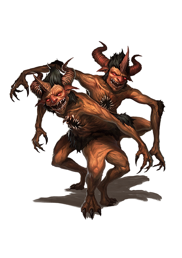 Even adhukaits' origin contains not one but two stories. Some believe they were created when two godlike brigands attempted to raid a celestial hall and had their bodies crushed together and thrown down from the heavens. Another legend states two asura twins once challenged a great warrior to duel them in turn. When they attacked him together, he was so enraged he slammed one into the other so hard that they were fused together from that day forth.