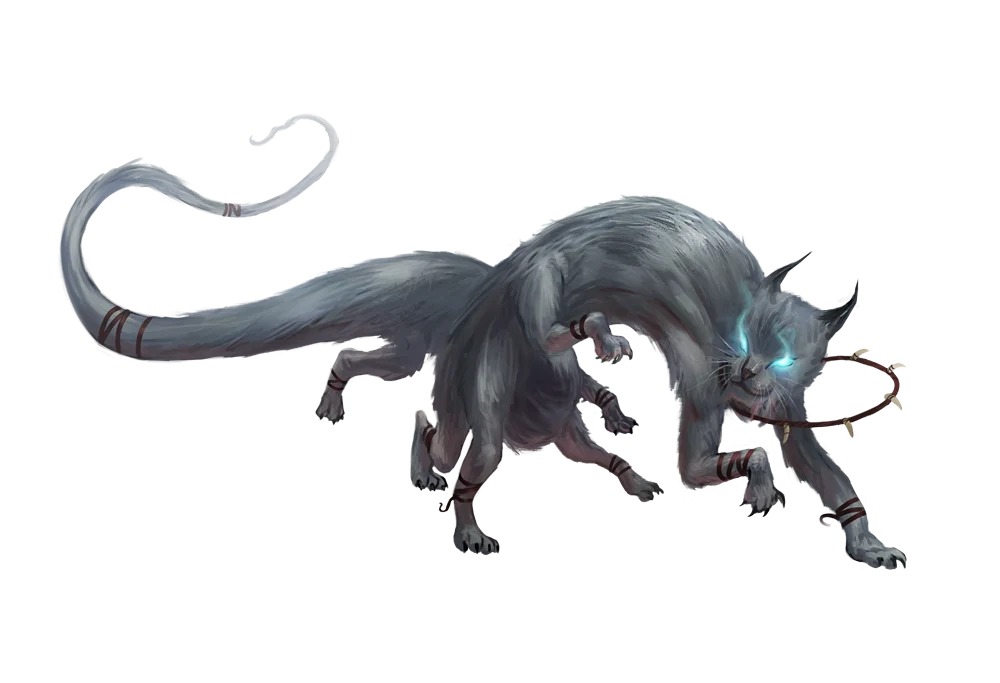 Porachas are feline beasts native to the mystical Forest of Spirits in Tian Xia. In their natural form, these graceful eight-legged creatures sport a gray tabby coat of fur streaked with lines of olive green, but they are rarely seen this way. Even the youngest porachas are capable of hiding within objects, making them incredibly elusive and rarely seen except on their own terms. Because porachas can so effortlessly blend in with the forest and emerge from its dark corners in an instant, superstitious locals believe these beasts are related to kami—nature spirits who embody individual trees, stones, or other elements of nature in the Forest of Spirits. The truth is, while porachas frequently associate with kami, they are their own breed of monster.