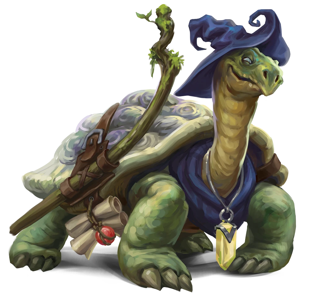 The ever-increasing number of druids flocking to the island were enamored with the enormous but gentle creature, eventually adopting her as a sort of mascot. As centuries became millennia, she also became something of a living historical archive, her massive shell scutes having absorbed and recorded centuries of environmental data like the rings of an ancient tree. Not all these records are formed naturally; Emorga's shell is also covered in thousands of etchings that include elaborate decorative symbols and patterns alongside ancient historical accounts, secret messages recorded in long-forgotten druidic ciphers, and archaic primal spell formulas dating back to the dawn of the tradition. To the druids who shared her island home, Emorga would come to serve both as a symbol of the Wildwood Lodge's endurance across the centuries, and as a living repository of knowledge from the generations that had come before.