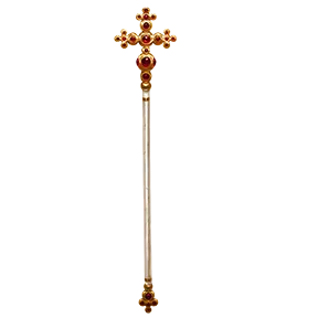 This white wood staff is capped at each end with a golden cross adorned with ruby cabochons. A staff of healing grants an item bonus to the Hit Points you restore anytime you cast the heal spell using your own spell slots or charges from the staff.