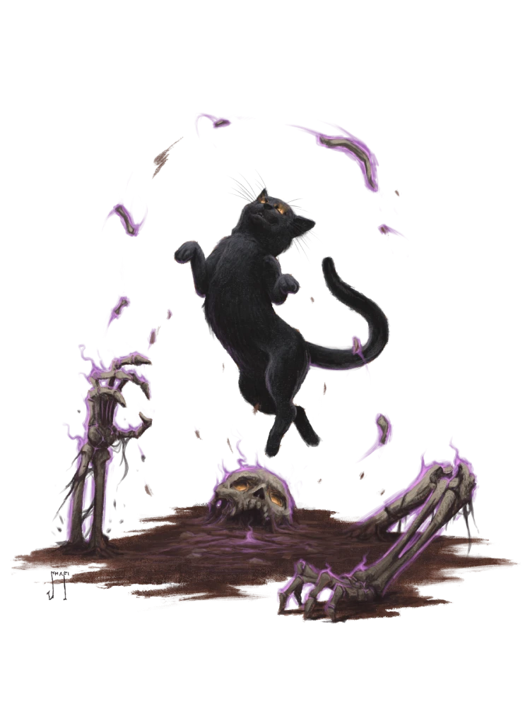 Bakenekos mostly see their animated but mindless zombies as amusements, though they also use them as guardians or even as agents for revenge. Still, they do their best to ensure that undead they animate aren't left to wander free. Most tales of “evil bakenekos” in fact refer to a similar and much more dangerous creature, the nekomata—a level 6 Medium-sized variant of the bakeneko whose bite causes a debilitating disease of the mind.