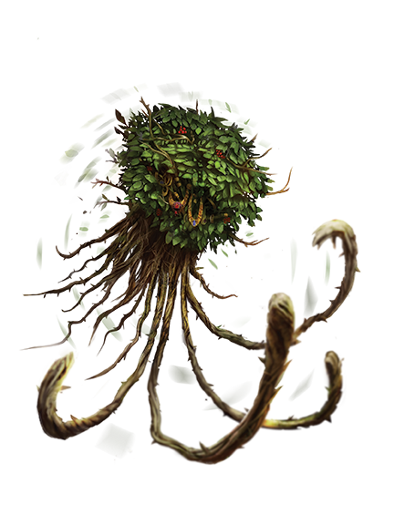 Drainberry bushes are floating bushes that originate from the First World, with long, thorny vines and dense clusters of bright-red berries. Their hollow thorns quickly siphon blood, which is how these carnivorous plants feed, and they rapidly turn consumed blood into fresh batches of delicious berries. Drainberry bushes exude a faint white glow that is a result of stored positive energy.