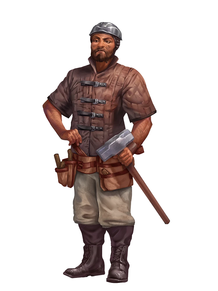 Items safety gear (functions as leather armor), sledgehammer (functions as a maul), artisan's toolkit, bricks (4), chalk