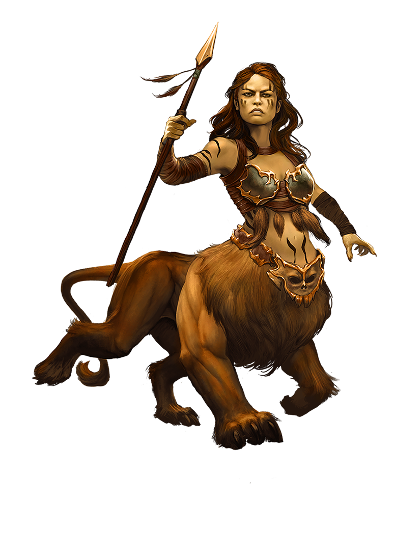Lamias are bloodthirsty victims of an ancient curse for which they blame the gods. Most lamias are humanoid from the waist up but have the lower bodies of beasts and monsters. Sinister magic comes naturally to a lamia, and they prefer the use of illusions and enchantments to deceive prey for later consumption, or simply to torture.