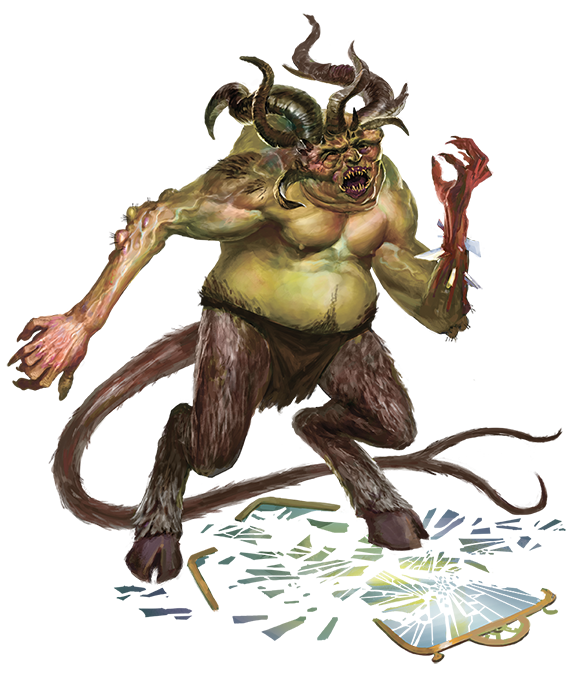 The Abyss may be the largest of the Outer Planes, and mortals have an equally large capacity to betray themselves, society, and the natural order of reality. With this limitless source for increasingly specialized sins, the Abyss is constantly generating new types of demons to plague reality. While the vast majority of these are swiftly destroyed and never rise again, enough survive that dozens, if not hundreds, of types of demons are known to exist beyond those listed here. The shadowy invidiak is a demon without a body, born of envious souls. The goat-faced, flame-hooved brimorak rises from the souls of arsonists. Slimy, horned blood demons spawn from assassins, boar demons from the greedy... the list goes on and on.