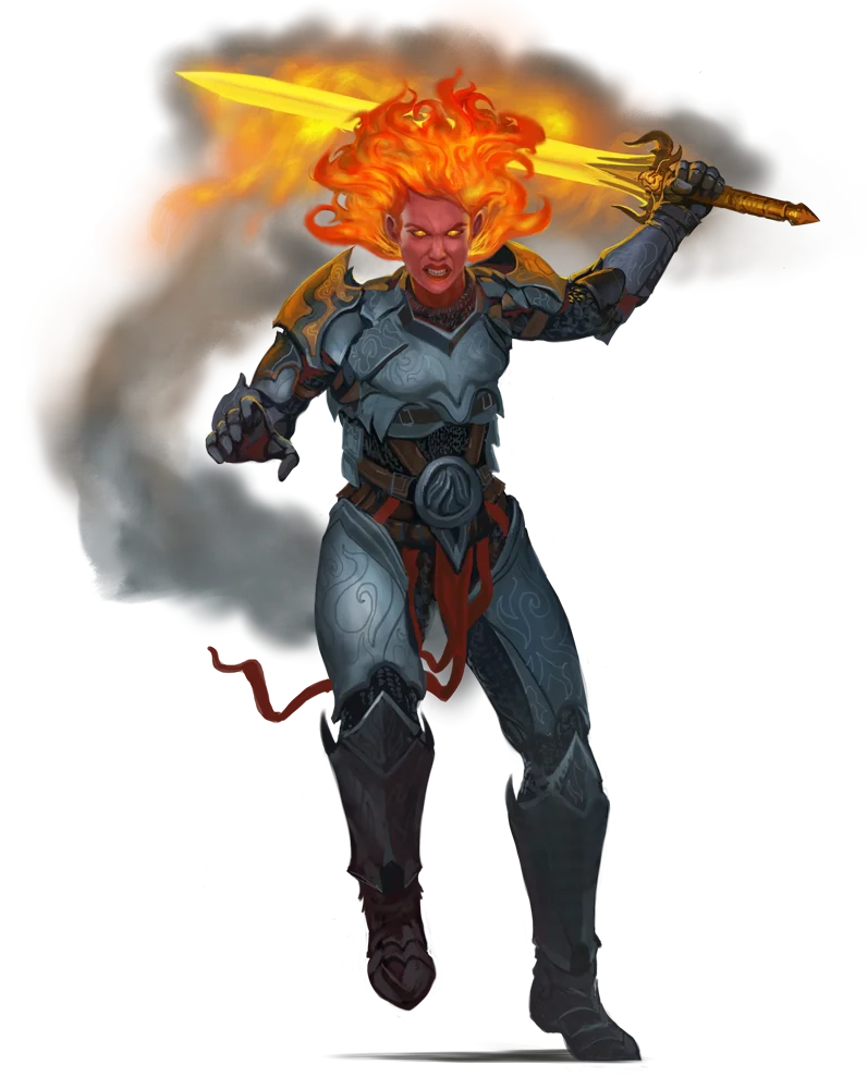 The most militaristic of giants, fire giants focus obsessively on learning combat techniques, mastering the arts of forging weapons and armor, and finding new ways to dominate their enemies. Most fire giant communities are built around elemental rifts, hot springs, or volcanic calderas and cannot be moved easily, inspiring unwavering defense against any intruders. As a result, their social and political structures are grounded firmly in martial hierarchies, with a strict emphasis on following the orders of one's superior.