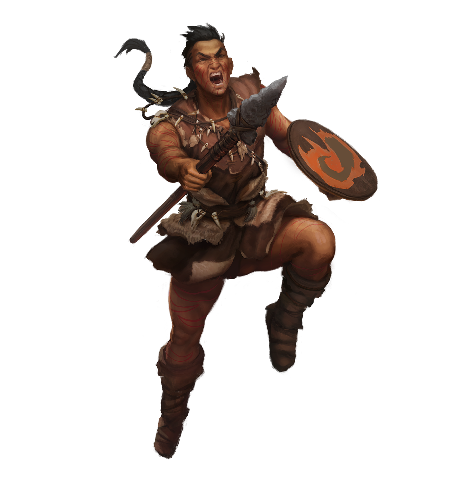 The great-grandson of Grandfather Eiwa's deceased sister, Pakano is the heir apparent to Eiwa's role as Mammoth Lord of Falcon House. Of all the Broken Tusk houses, Falcon House's family tree is both the oldest and the most gnarled. Pakano's grandmother fell in love with a respected Kellid aasimar named Lomok, and through their union, she bore a daughter named Kopua. Lomok ultimately joined the Burning Mammoths in their fight against the demons of the Worldwound, leaving his brokenhearted wife and infant child in the care of the Broken Tusks. Thankfully, the protectors of the Primordial Flame recognized Kopua's gifts—her sonorous laughter and unmatchable kindness—and she became a beloved fixture of Broken Tusk life, her bright golden hair as recognizable a symbol as their actual banner. Kopua married a grim but dashing Kellid man, and they soon announced their pregnancy to the following's joy.