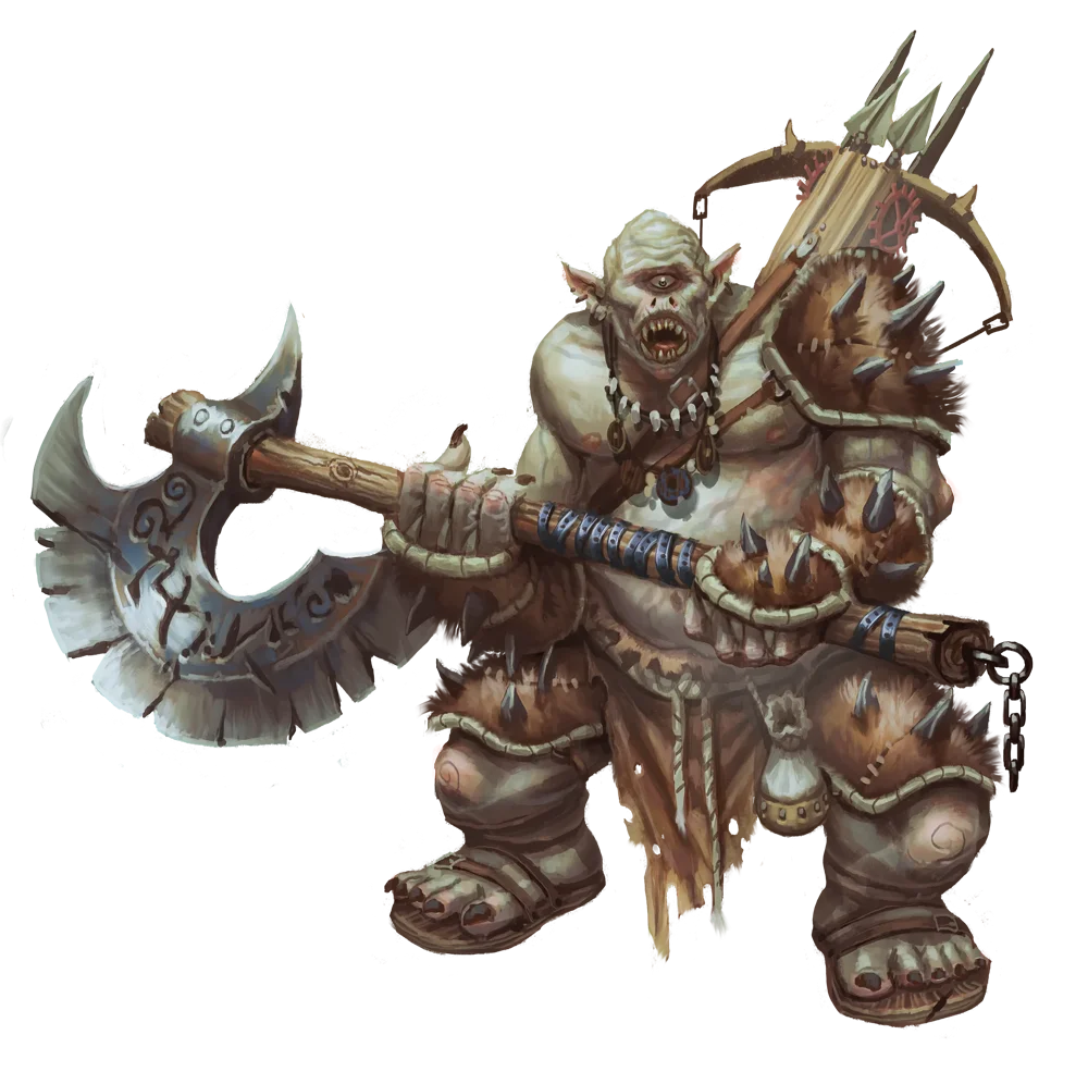 The cyclopes are violent giants with a tragic past. Although they possess only one eye, they could once see far more than most, possessing occult wisdom and divinatory magic that gave them the mystic ability of foresight. But their legendary oracular powers failed to prevent the fall of their society, and the vast kingdoms of the cyclops long ago collapsed into ruin. Today, cyclopes have forgotten much of what they once knew, and they skulk among the crumbling remains of their fallen cities like forgotten kings and queens of their own fallen kingdoms.