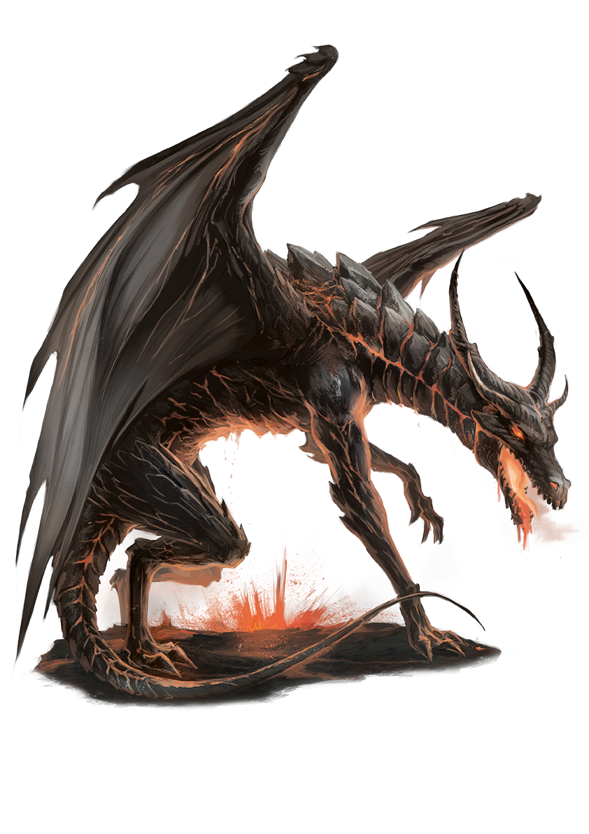 Magma dragons have a reputation among other dragons for being unpredictable and brash. Their temperament and tendency for violent outbursts ensure that the typical magma dragon lives a solitary life, with hatchlings often bickering or fighting to establish dominance among themselves before they leave the nest. A magma dragon always has a reason for their outbursts and can always justify their sudden turns in mood, yet they rarely feel the need to do so.