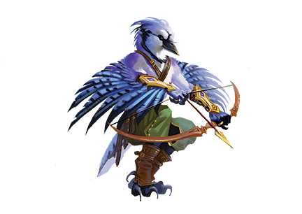 Garudas are noble, birdlike beings descended from the gods. They were born under the cerulean skies of the Outer Plane of Elysium but have since spread to the Material Plane, and it is here that they primarily reside. On Golarion,the largest garuda populations live in the rugged hills and mountains of Vudra, though some have spread to the Impossible Kingdom of Jalmeray and even to the eastern mountains of Garund.