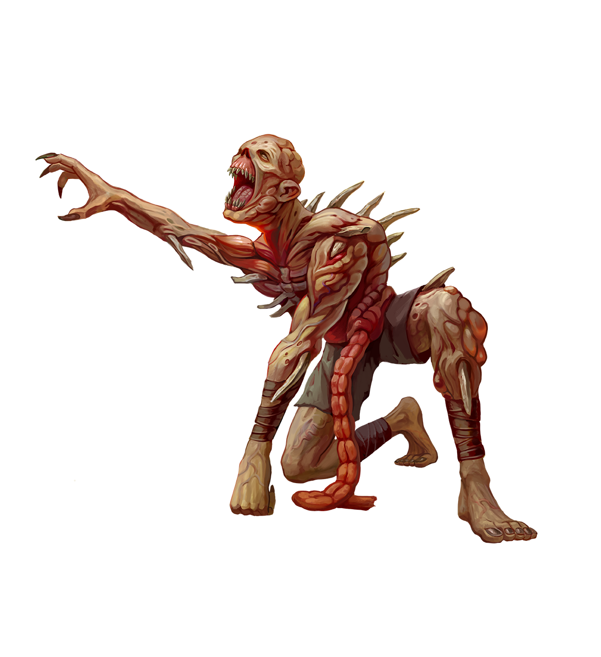 An unrisen is a mangled conglomeration of splintered bones, decaying organs, and rotting flesh, created when a ritual such as resurrect goes catastrophically wrong. Immense care must be taken, for if the ritual is a critical failure, an unrisen can be the result—as many a ritualist has learned to their horror.