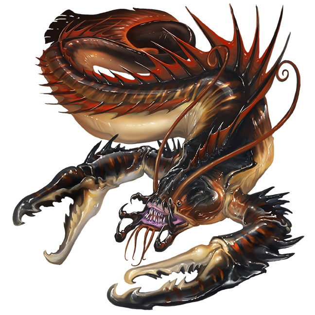 Reefclaws are aquatic monsters that resemble huge shrimp or lobsters. As one might expect from its name, a reefclaw’s oversized claws are powerful weapons with their vicelike grip and the ability to inject potent venom into unfortunate prey.