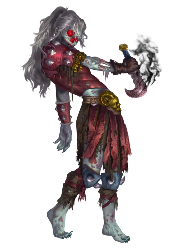 Wights are intelligent undead spawned through inescapable cycles of spite. This spite might come from their own malevolent will in life, or can be instilled by necromantic rituals, typically involving the desecration of burial sites. Wights usually haunt burial grounds, catacombs, or other places of the dead. Their hunger is targeted toward the living—those whose pumping hearts and ruddy warmth inspire visceral hatred.