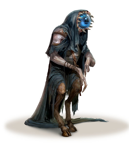 Walking embodiments of curses, misfortune, and the evil eye, aghashes wander the deserts of the Material Plane, searching out the arrogant, charming, and persuasive to humiliate and undermine. Aghashes are often mistaken for some strange form of hag, and like those creatures, they're masters at curses.