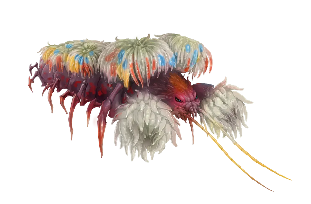 This peaceful cooperation is indirectly caused by the legendary crustacean Tehialai-Thief-Of-Ships. Since Tehialai's rampages are a constant threat in the Okaiyo, the ancestors of the decapod dinghies bonded with other marine life to survive. Decapod dinghies' relationship with anemones is particularly tight, using the small creatures as poisonous extensions of their own bodies and using their response to movements in the water to compensate for the decapod dinghy's otherwise poor vision. In a region wracked by Tehialai's storms, everyone needs to band together, after all.