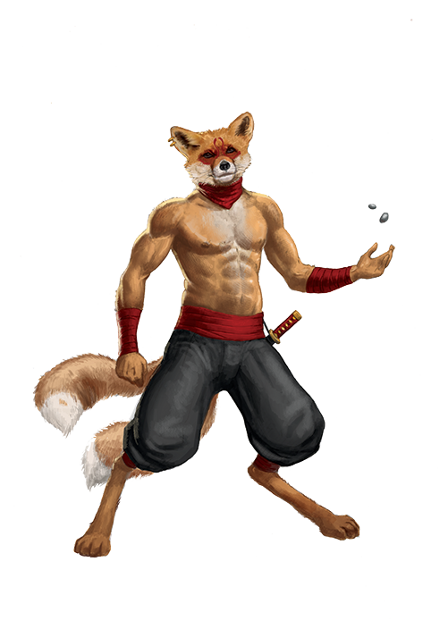 Kitsune are shapeshifting, fox-like humanoids who have been blessed by the spirits. They can shift from the form of a fox-headed humanoid into a specific alternate form unique to each kitsune, usually either a tailless form—such as a humanoid body without any fox features (typically of the prevalent ancestry where they grew up)—or a fox form. Kitsune revel in joy and beauty, often practicing storytelling, dance, and other creative arts. However, they also have a penchant for playing pranks on the joyless and self-important, earning them a reputation as tricksters. Favored by the goddess Daikitsu, kitsune seem to be almost supernaturally lucky, perpetually dodging danger by the narrowest margins.