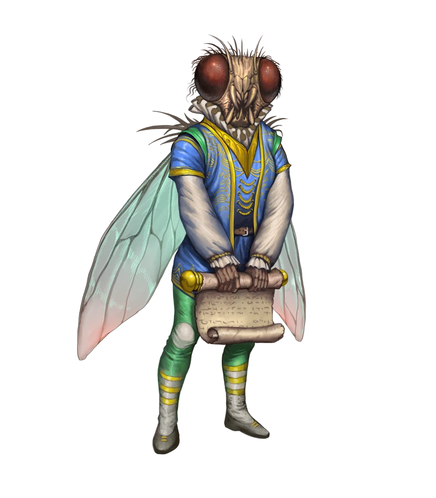 Although the coloxus has the hideous head of a monstrous fly, these demons are fastidious and clean, always dressing in stylish clothing without a blemish on them. Coloxuses are manipulators and schemers born from destructively vain souls. Evil mortals are fond of conjuring them to serve as emissaries or spies, but they also make excellent assassins. Even in the role of murderer, the demon remains cloyingly polite and formal, reveling in the irony of perpetuating such a horrible crime under the guise of good etiquette, as if it were a delicate bit of diplomacy.