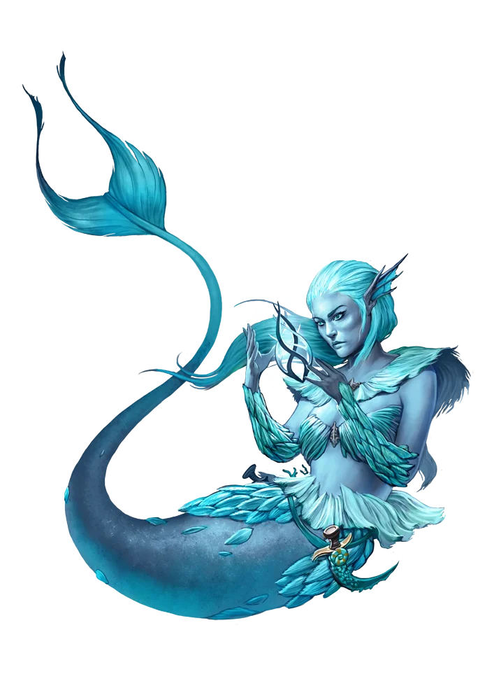 Elegant, mysterious, and graceful; all this and more can be said of merfolk. These enigmatic people resemble humanoids with delicate features from the waist up but with the fins and tail of a massive fish from the waist down. Found in nearly all of Golarion's oceans, merfolk are as varied in appearance as humans, their skin ranging from pale to umber and all shades in between, while their gleaming scales shimmer with the majesty of the sea.
