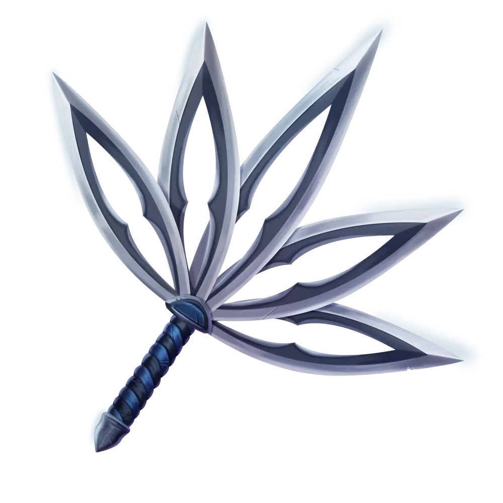 This fan-shaped sword designed by tengu smiths has five broad blades that join at its hilt. Tengu sailors use them as makeshift weather vanes, for the sword spins in the wind’s direction when loosely held aloft.