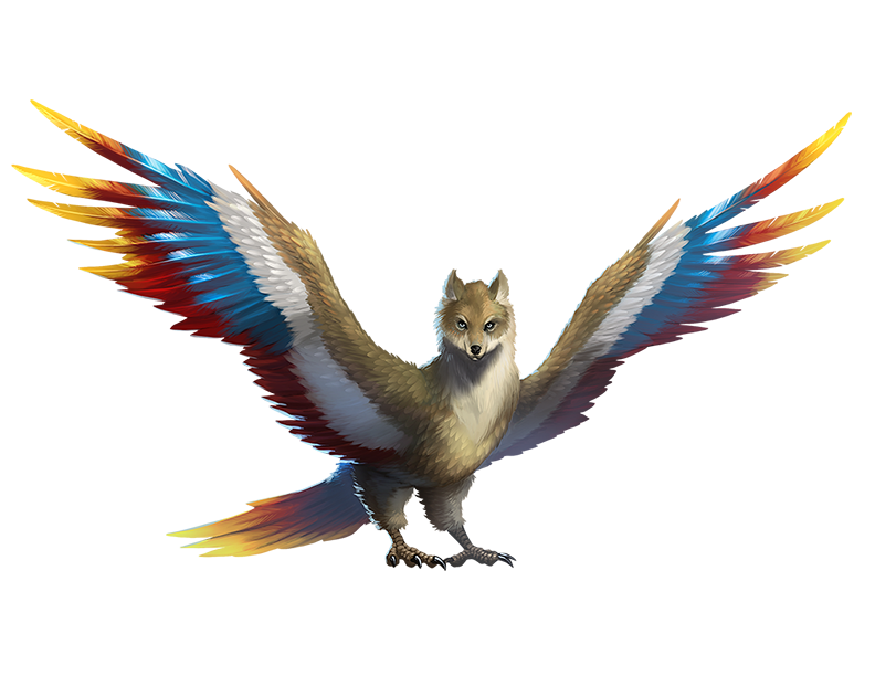 Desert-dwelling people consider the sight of a simurgh a herald to a lifetime’s worth of luck, and those who are unfamiliar with the majestic beast might mistake it for the avatar of a deity. Beautiful, graceful, and truly gargantuan, the simurgh resembles nothing so much as a massive multicolored bird with the head of an equally enormous and regal lupine. Simurghs act as intermediaries in world-threatening conflicts, serving as agents of good deities or vigilantes who spread their own brand of justice, typically by obliterating or banishing evil extraplanar beings.