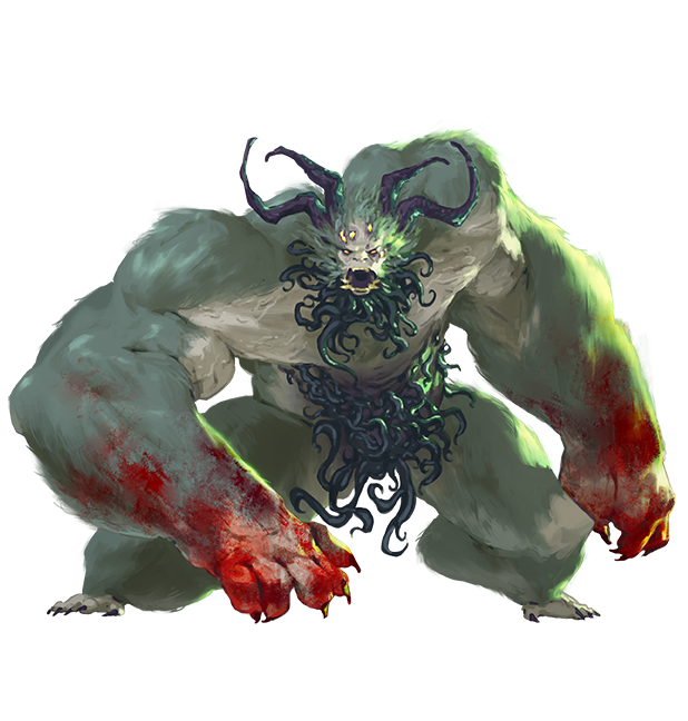 Melee [one-action] tentacle +26 [+21/+16] (reach 10 feet), Damage 3d6+10 bludgeoning plus invasive blackfrostMelee [one-action] horns +26 [+22/+18] (agile, cold), Damage 3d8+10 bludgeoning plus 1d6 cold and KnockdownOccult Innate Spells DC 32, attack +24; 6th feeblemind, phantasmal calamity; 5th black tentacles, synaptic pulse; Cantrips (6th) daze