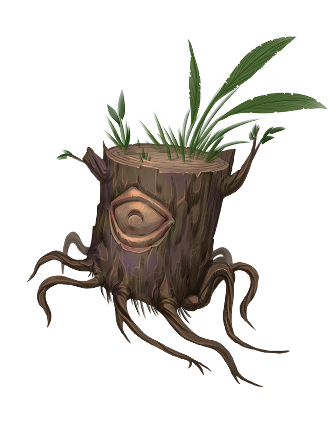 The vibrant elemental energy of the Plane of Wood imbues even the most rotten of fallen trees, empowering their remains to travel in search of the best locations for the next generation to put down roots. This mono-eyed, rotten stump launches seeds that begin to sprout the moment they're buried, whether in the ground or in a living creature's skin.