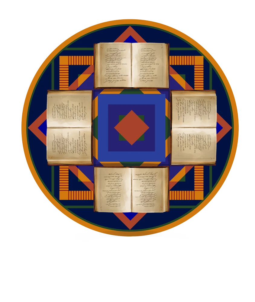 Religious Symbol mandala with books as compass points