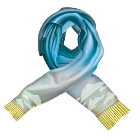 This scarf is made of fine silk that's the same shade of blue as a clear, cloudless sky. The short ends are edged with a fine gold fringe that seems to sway even in still weather as though touched by invisible winds. The long edges have exquisite embroidery in threads that vary from a blue identical to the silk to the deep gray of storm clouds during winter. Wearing this scarf grants a +2 item bonus to Performance checks to dance and to Acrobatics checks to Escape.