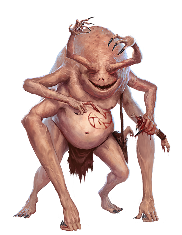 When not on the hunt, blood painters seek out beautiful vistas, which they placidly admire via the eyes in the hands of their uppermost limbs and then reproduce on canvas. Exceptional art endlessly fascinates these creatures, and skilled dancers and painters alike occasionally escape the aberrations by creating a new work to trade for their lives. Blood painters jealously guard these works, and much of their treasure consists of art. Blood painters tend to mastermind the periodic theft of masterpieces.