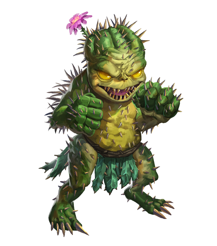 These little plants are known for their nettlesome attitude. Their personalities mirror the spines that sprout from all over their bodies, making them cantankerous and slightly prickly, though they are unswervingly loyal to those who earn their trust. At home in dry and arid landscapes, cactus leshys store water inside their bodies in order to survive these harsh conditions.
